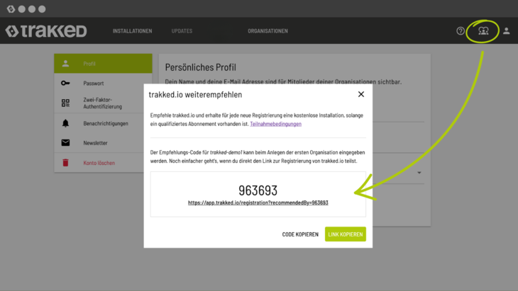 Je mehr Personen du einlädst, desto mehr Gratis-Installationen kannst du sammeln. Also worauf wartest du noch? Teile deine Begeisterung für trakked und empfehle uns weiter!