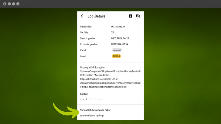 Hier haben wir zwei Verbesserungen implementiert. Wenn trakked in einer Fehlermeldung das entsprechende Paket erkennen kann, wird dieses nun in der Detailansicht aufgeführt. Zusätzlich lässt sich nach diesen Pakten auch filtern.
