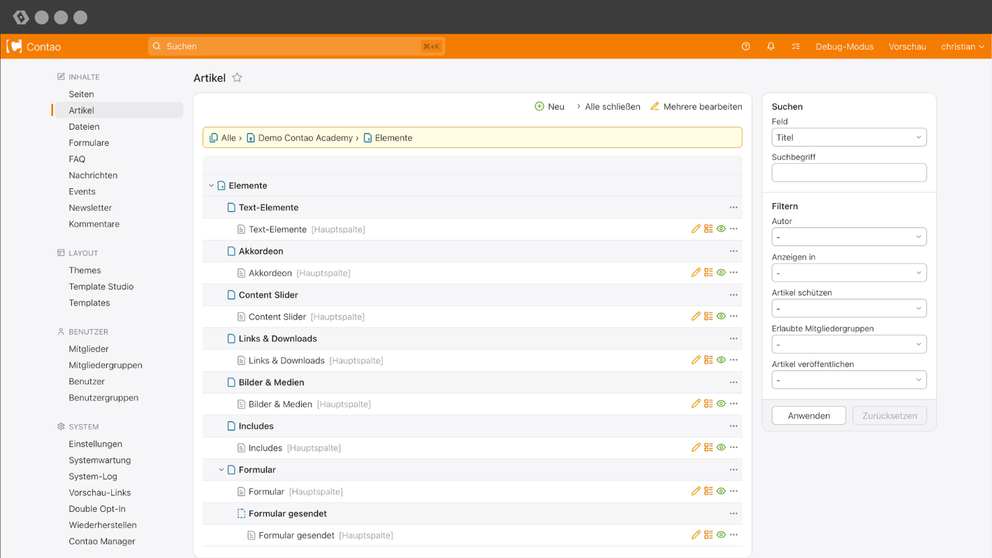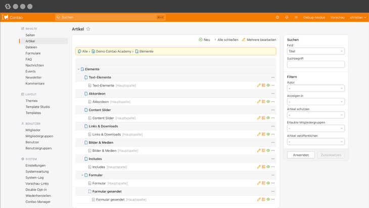 - Video zu den neuen Funktionen in Contao 5.5 (YouTube)