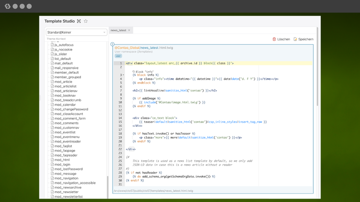 Das Template Studio hat etliche UX-Verbesserungen erhalten. Neu ist die Autovervollständigung von Contao-spezifischen Filtern, der Fullscreen-Mode und eine Suche. Ausserdem zeigt es jetzt auch die Inhalte der alten .html5-Templates an.