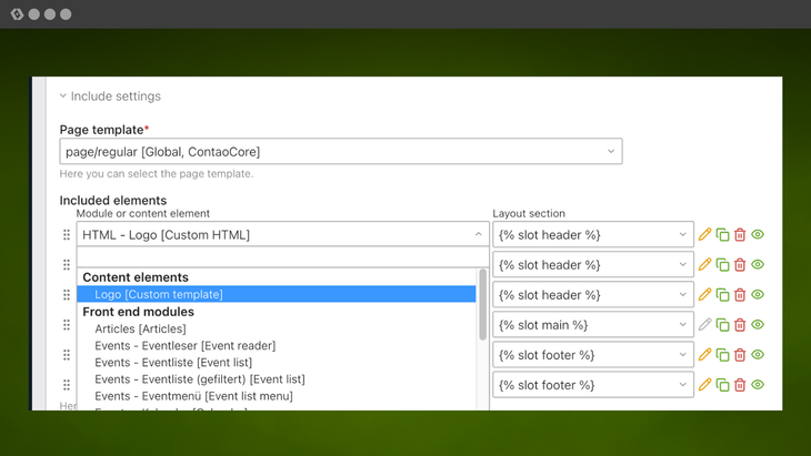 You can now manage content elements directly in the theme and integrate them into the various layout areas or slots.
