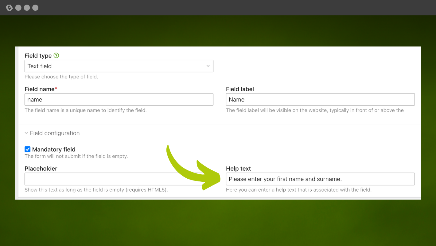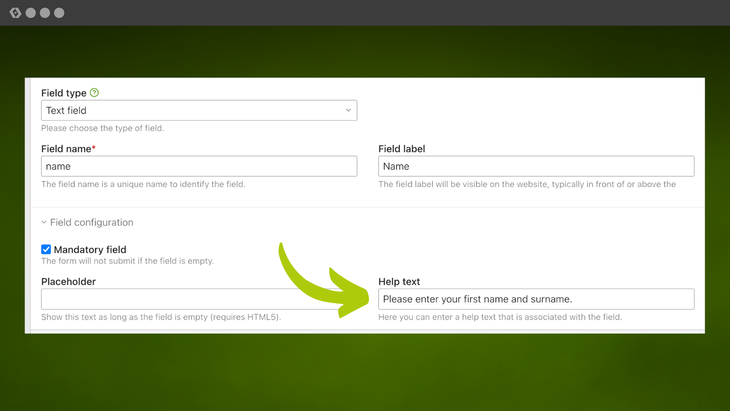 You can now add a help text to the form fields, which is displayed below the respective field in the form.