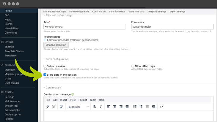 A new setting in the forms now ensures that data is only saved when it is really required. This means that in many cases you can completely dispense with a session and therefore the CSRF cookie in the front end.