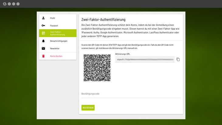 - Scan the QR code with your 2FA/TOTP app and enter the confirmation code